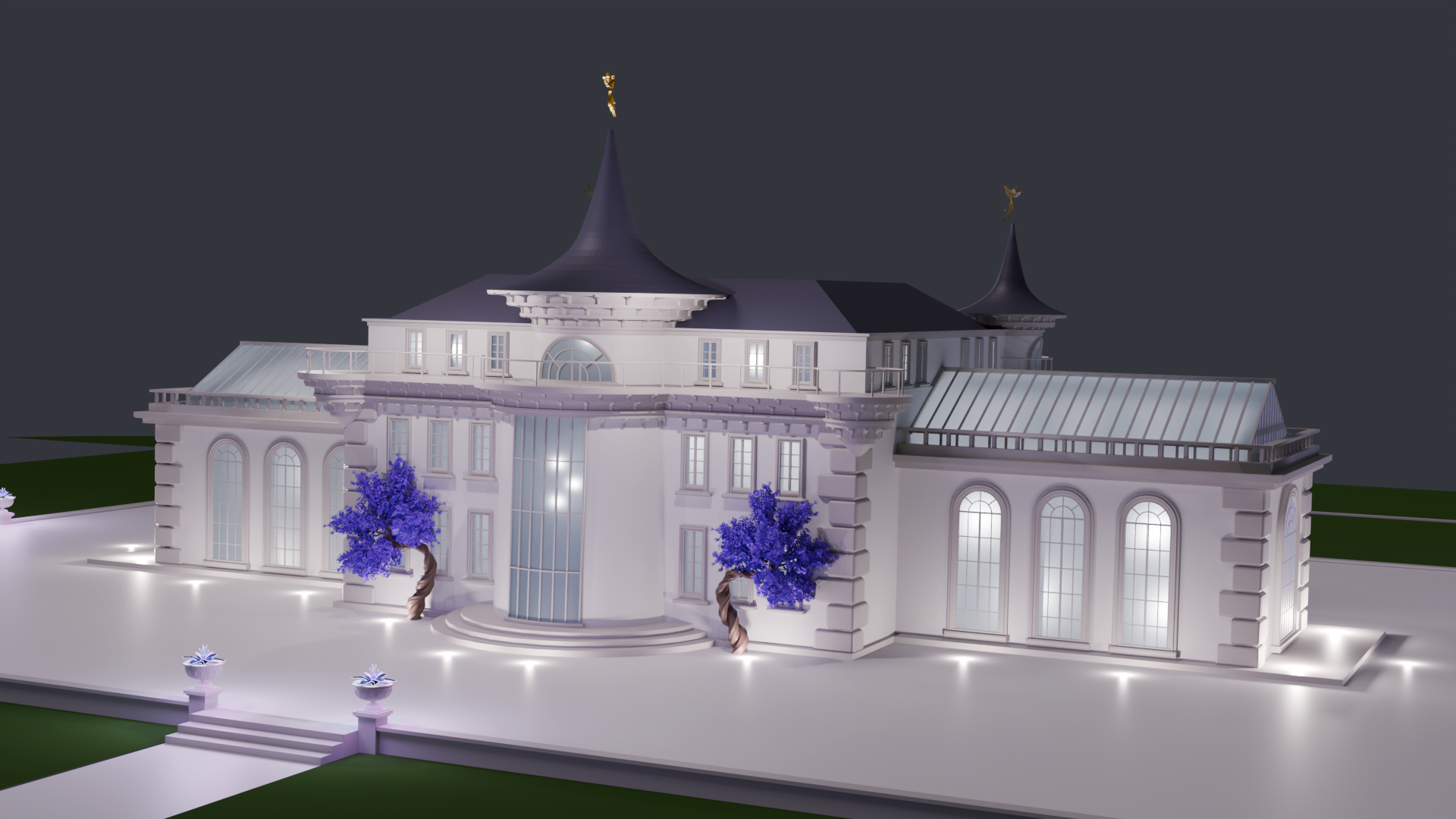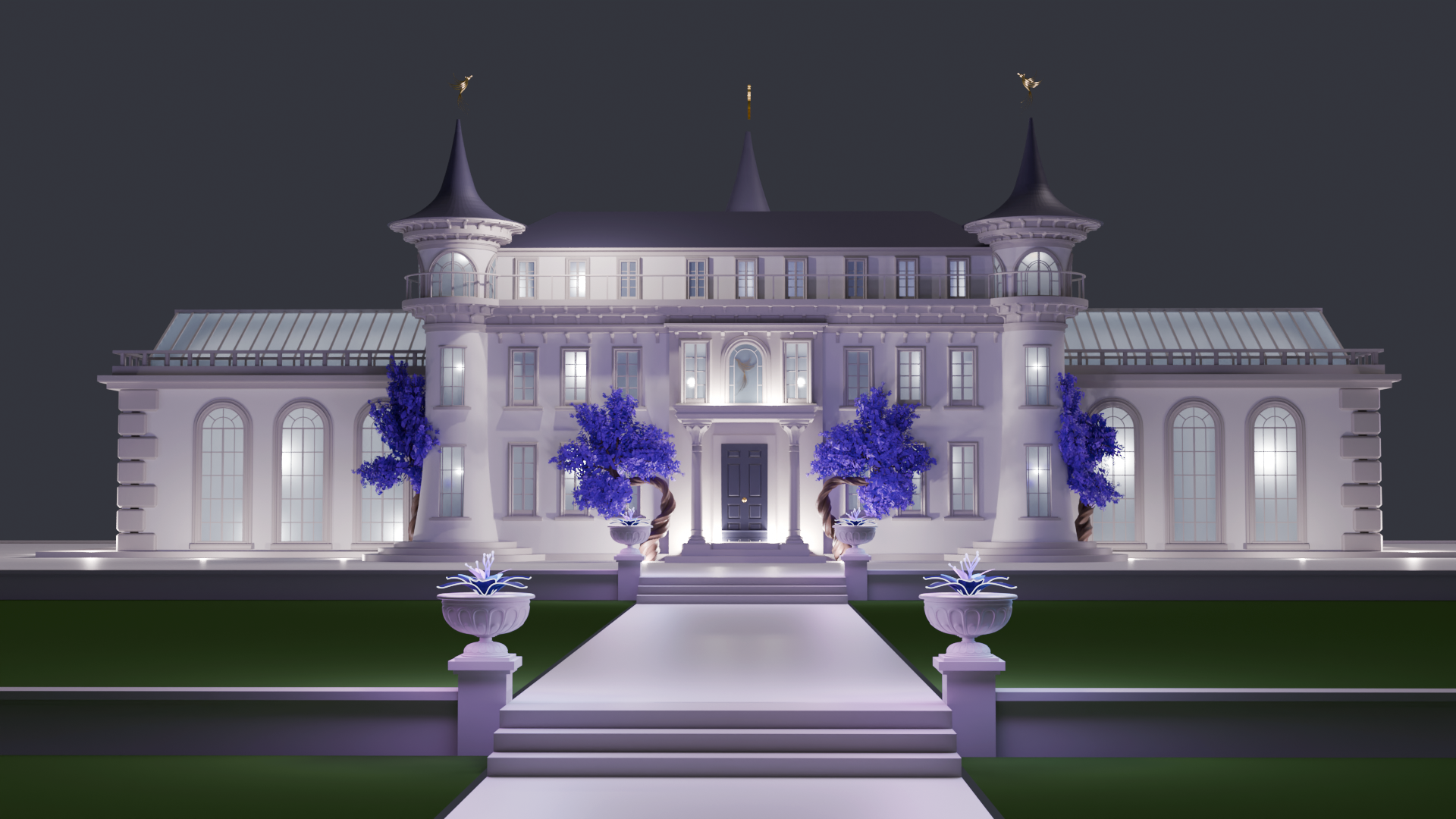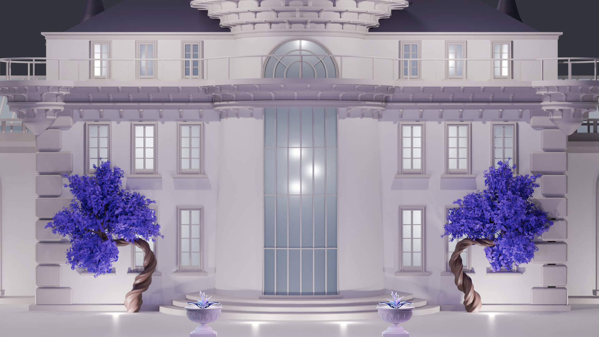 I upgraded all the windows to have a regency vibe, but with a fairytale twist on the towers.